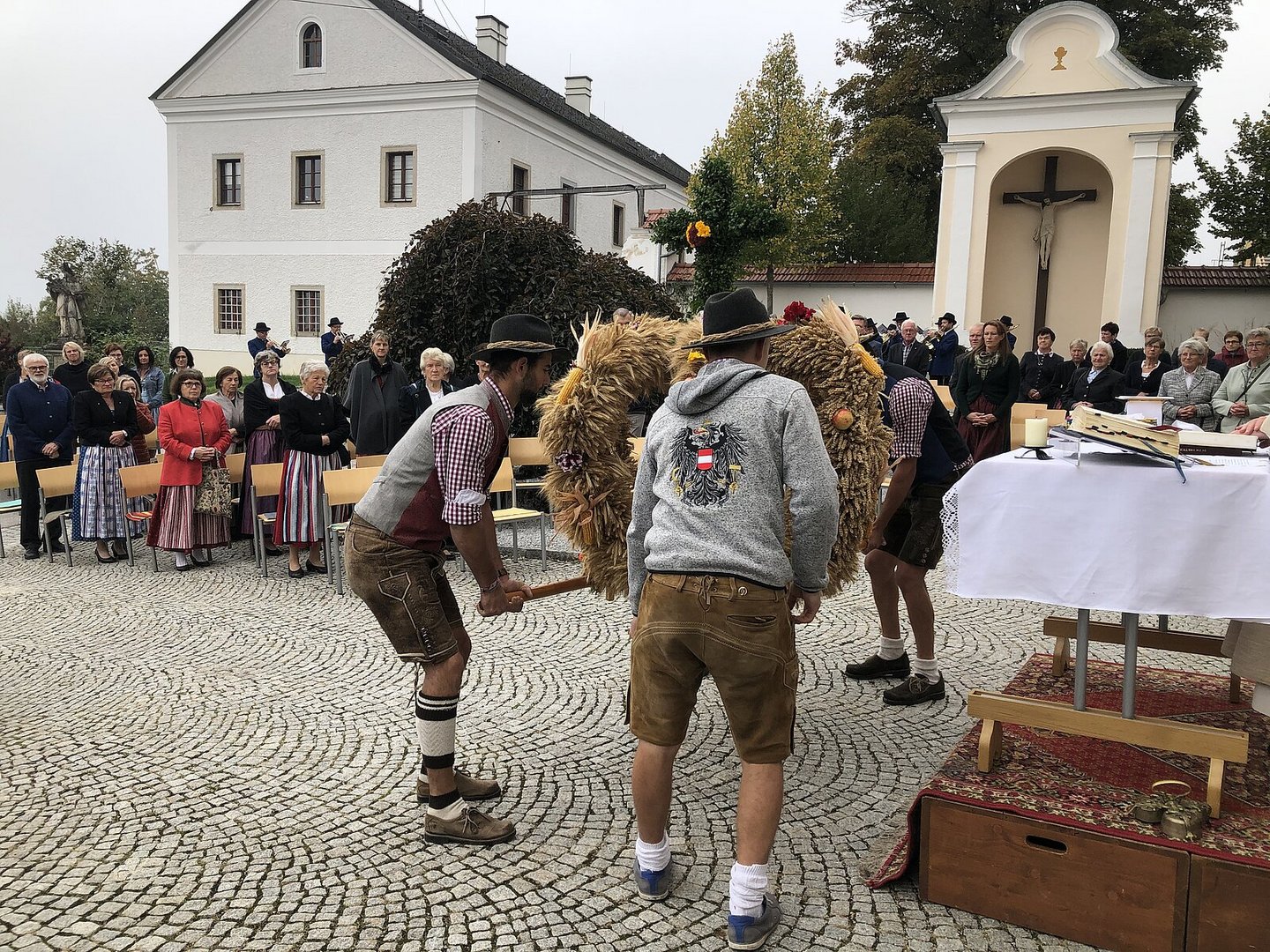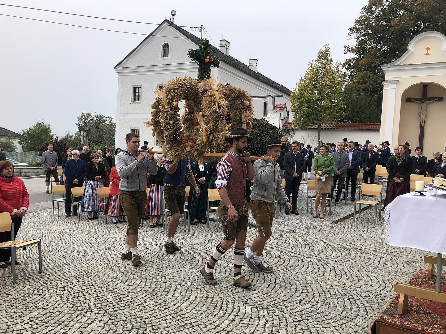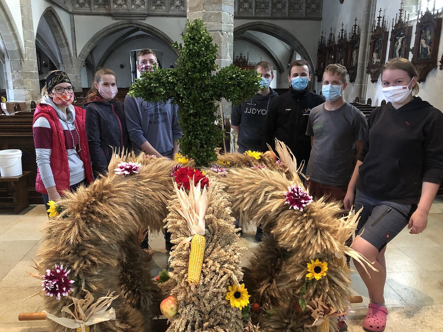 Am Samstag wurde unsere Erntedankkrone nochmal schön hergerichten. Am Sonntag 04. Oktober feierten wir dann gemeinsam mit Abt Reinhold Dessl vor dem Kirchenplatz das Erntedankfest. Danach fuhren wir noch zu unserem Leiter Dominik Freiseder und liesen den Tag gemütlich ausklingen.